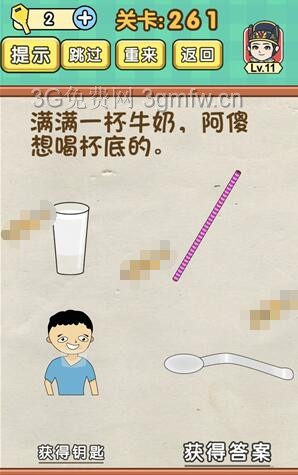 满满一杯牛奶阿傻想喝杯底的是《脑力达人全民烧脑游戏》第261关的问题,很多网友不知道答案是什么,下面小编给大家带来脑力达人全民烧脑游戏第261关攻略。