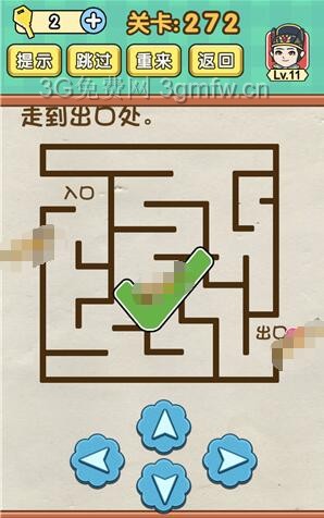 走到出口处是《脑力达人全民烧脑游戏》第272关的问题,很多网友不知道答案是什么,下面小编给大家带来脑力达人全民烧脑游戏第272关攻略。 问题:走到出口处? 答案:不走迷宫,从外面走。 老友网www.andlaou.com免费为你分享