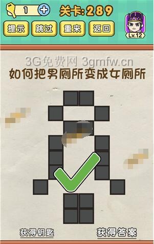 如何把男厕所变成女厕所是《脑力达人全民烧脑游戏》第289关的问题,很多网友不知道答案是什么,下面小编给大家带来脑力达人全民烧脑游戏第289关攻略。 问题:如何把男厕所变成女厕所? 答案:如上图所示。 老友网www.andlaou.com免费为你分享