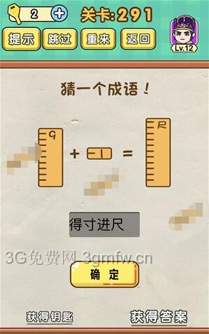 猜一个成语是《脑力达人全民烧脑游戏》第291关的问题,很多网友不知道答案是什么,下面小编给大家带来脑力达人全民烧脑游戏第291关攻略。 问题:猜一个成语? 答案:得寸进尺。 老友网www.andlaou.com免费为你分享
