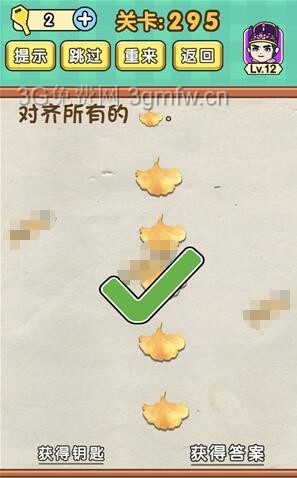 对齐所有的枫叶是《脑力达人全民烧脑游戏》第295关的问题,很多网友不知道答案是什么,下面小编给大家带来脑力达人全民烧脑游戏第295关攻略。 问题:对齐所有的枫叶? 答案:题目中的枫叶也要一起对齐。 老友网www.andlaou.com免费为你分享