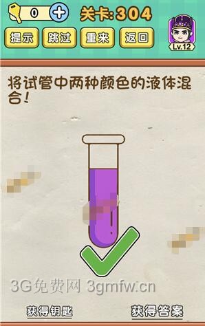 将试管中两种颜色的液体混合是《脑力达人全民烧脑游戏》第304关的问题,很多网友不知道答案是什么,下面小编给大家带来脑力达人全民烧脑游戏第304关攻略。