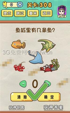 鱼缸里有几条鱼是《脑力达人全民烧脑游戏》第308关的问题,很多网友不知道答案是什么,下面小编给大家带来脑力达人全民烧脑游戏第308关攻略。 问题:鱼缸里有几条鱼? 答案:0。 老友网www.andlaou.com免费为你分享