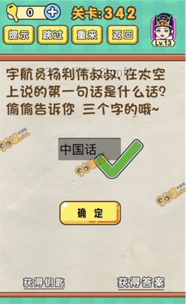 宇航员杨利伟叔叔在太空上说的第一句话是什么是《脑力达人全民烧脑游戏》第342关的问题,很多网友不知道答案是什么,下面小编给大家带来脑力达人全民烧脑游戏第342关攻略。