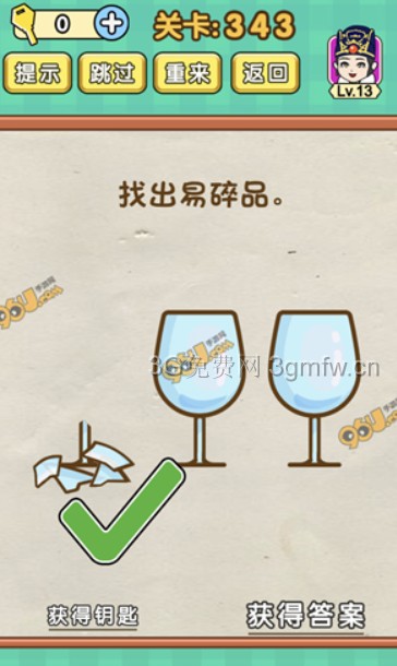 找出易碎品是《脑力达人全民烧脑游戏》第343关的问题,很多网友不知道答案是什么,下面小编给大家带来脑力达人全民烧脑游戏第343关攻略。 问题:找出易碎品? 答案:用力摇晃手机。 老友网www.andlaou.com免费为你分享
