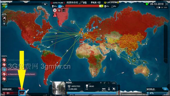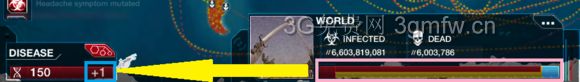 一是感染一定数量的人口后游戏给你的高额感染DNA奖励(左下角箭头);