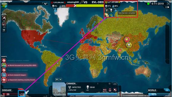 解药DNA的获得是在对方病原体解药完成后自动给己方增加10~12DNA,对方解药完成几次就加成几次。相反己方解药研发完成也会给对方解药DNA奖励。