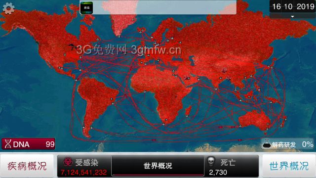 升完以后就会发现第一个发现和第一个确认死亡出来了不要惊方,继续攒基因,刷病症,变异或解药什么的也不用管,等待所有国家慢慢垮台解药自然而然就停下了