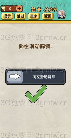 向左滑动解锁是《神脑洞游戏》第309关的问题,很多网友不知道答案是什么,下面小编给大家带来神脑洞游戏第309关攻略。