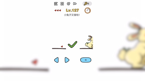 这一关需要我们先将上面的生命值,也就是一颗心移到兔子这里使其变大。