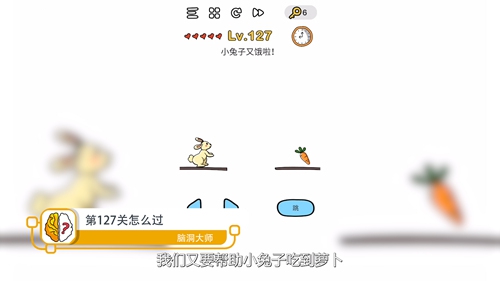 兔子变大以后再通过下方的操作键,使其跳过断桥即可吃到胡萝卜啦。