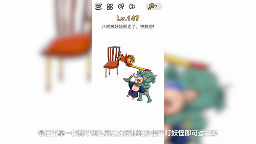 最后再拿一根凳子脚也就是金箍棒给孙悟空打妖怪即可过关啦。