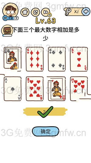 下面三个最大数字相加是多少是脑洞大大大第63关的问题,很多玩家还不知道第6关怎么过答案是什么,为了让大家快速通关,小编带来了脑洞大大大第63关攻略。
