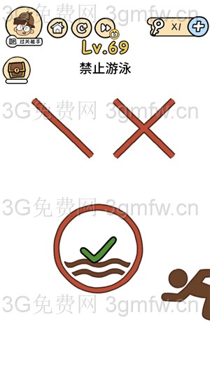 禁止游泳是脑洞大大大第69关的问题,很多玩家还不知道第6关怎么过答案是什么,为了让大家快速通关,小编带来了脑洞大大大第69关攻略。 问题:禁止游泳? 答案:把小人拖出去即可。 老友网www.andlaou.com免费为你分享