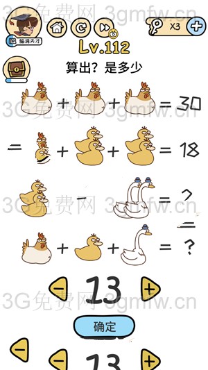 算出是多少是脑洞大大大第112关的问题,很多玩家还不知道第6关怎么过答案是什么,为了让大家快速通关,小编带来了脑洞大大大第112关攻略。 问题:算出是多少? 答案:13。 老友网www.andlaou.com免费为你分享