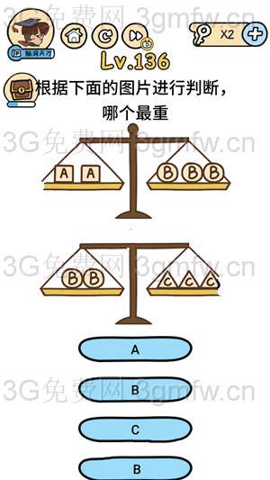 根据下面的图片进行判断哪个最重是脑洞大大大第136关的问题,很多玩家还不知道怎么过答案是什么,为了让大家快速通关,小编带来了脑洞大大大第136关攻略。
