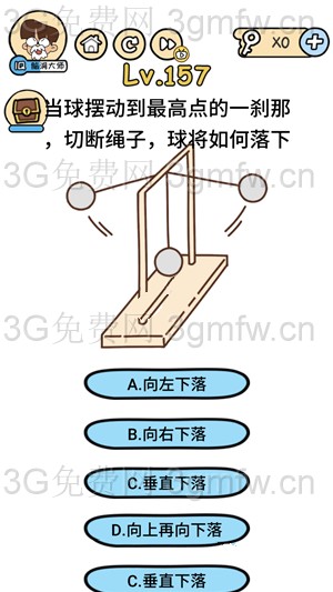 当球摆动到最高点的一刹那切断绳子求将如何落下是脑洞大大大第157关的问题,很多玩家还不知道怎么过答案是什么,为了让大家快速通关,小编带来了脑洞大大大第157关攻略。