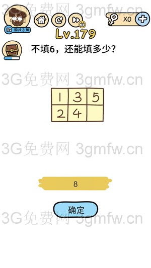 不填6还能填多少是脑洞大大大第179关的问题,很多玩家还不知道怎么过答案是什么,为了让大家快速通关,小编带来了脑洞大大大第179关攻略。 问题:不填6还能填多少? 答案:8。 老友网www.andlaou.com免费为你分享