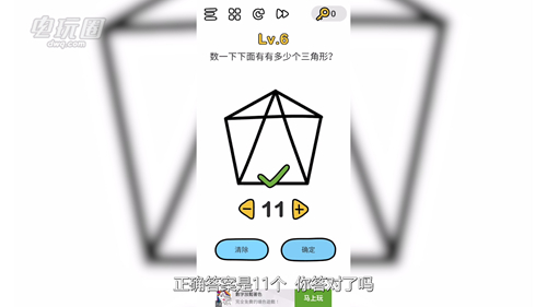 有点像学生时代的数学题 还是很简单的,不需要什么脑洞 玩家只需认真数数就可以了,正确答案是11个。