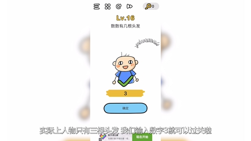 实际上人物只有三根头发我们输入数字3就可以过关啦。