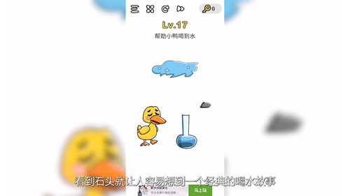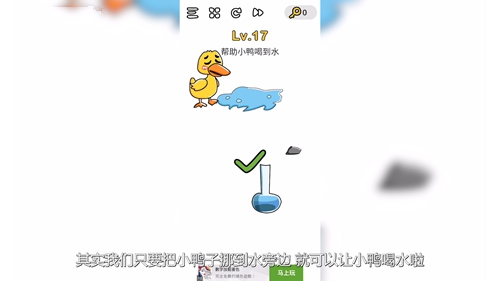 但这一关我们并不需要像那个故事一样帮助小鸭喝水,根据惯有的套路去思考。