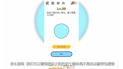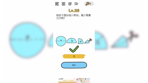 第26关问题:把这个圆分成八等分,最少需要几刀呢?