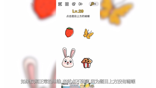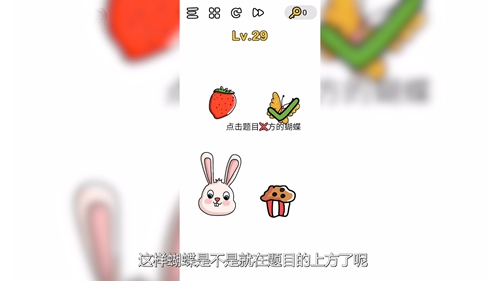 第29关问题:点击题目上方的蝴蝶?