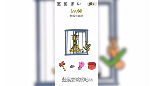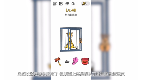 虽然长颈鹿被关起来了但明面上还是提供了各种道具给玩家 ,在这些道具中我们可以看到有把钥匙,然后直接用钥匙解开牢笼锁扣即可。