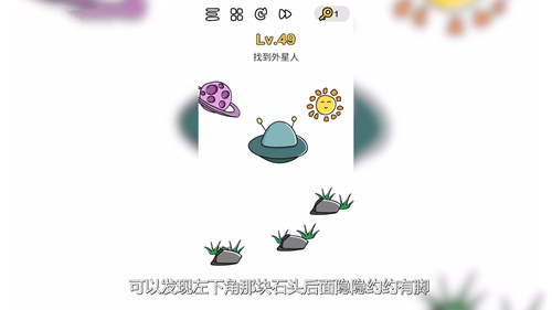 好像有点困难的样子,但仔细看的话可以发现左下角那块石头后面隐隐约约有脚,那就把UFO移到那块石头上面试试吧。