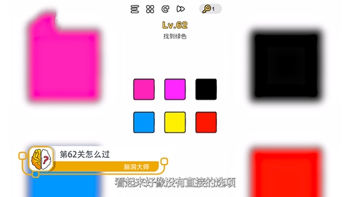 脑洞大师第62关怎么过? 脑洞大师第62关攻略 第62关问题:找到绿色? 第62关答案: 看起来好像没有直接的选项。 还是利用我们学的美术知识吧,将黄色挪到蓝色块即可合成绿色啦。 赶紧去试试吧。 老友网www.andlaou.com免费为你分享