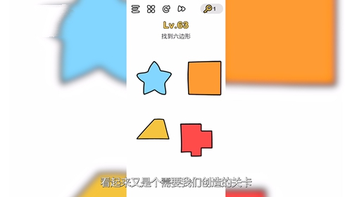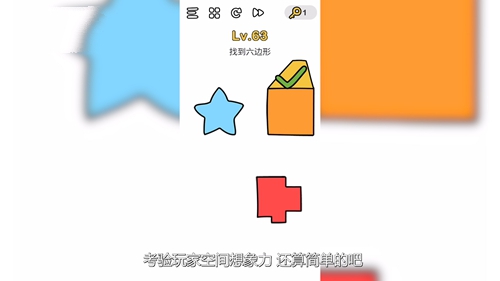 脑洞大师第63关怎么过? 脑洞大师第63关攻略 第63关问题:找到六边形? 第63关答案: 不如试试把梯形移到正方形上方吧,是不是就得到了一个六边形呢。 考验玩家空间想象力,还算简单的吧。 老友网www.andlaou.com免费为你分享