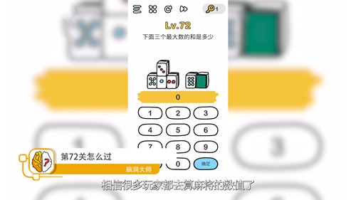 相信很多玩家都去算麻将的数值了,其实这些都是障眼法,正确过关思路是 算出键盘最后一排数字之和。