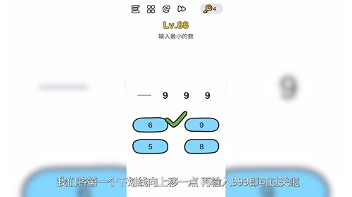 我们将第一个下划线向上移一点再输入999即可过关啦。