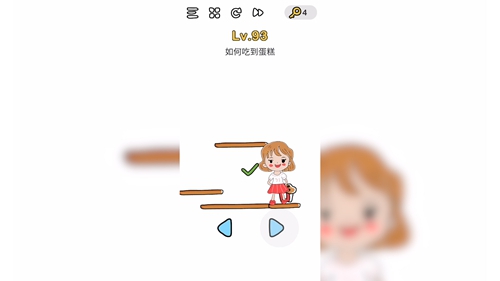 所以我们把这根棍子移到最下方即可,最后再点击右方向键让女孩下来即可吃到蛋糕啦。