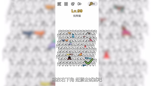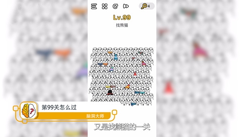 脑洞大师第99关怎么过? 脑洞大师第99关攻略 第99关问题:找熊猫? 第99关答案: 又是找熊猫的一关,这一关比之前那关难找有点复杂。 所以我们还是直接看答案吧,就在右下角,赶紧去试试吧。 老友网www.andlaou.com免费为你分享