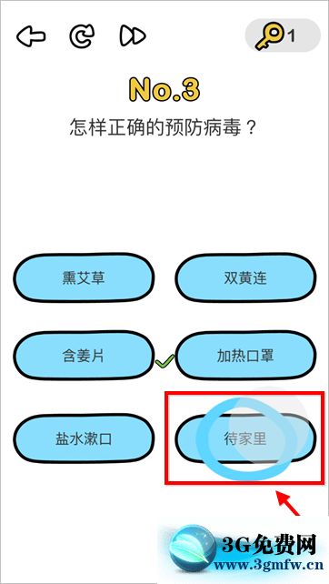 答案:待家里。本关卡考你预防小常识,答案就是“待家里”,没事不出门就是最好的预防。