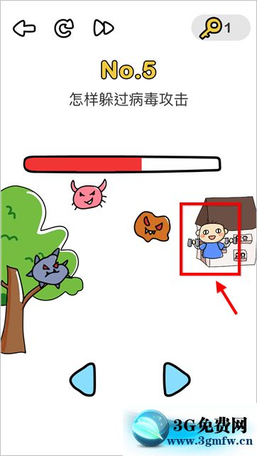 答案:把人拖回家里,锻炼虽然能增强免疫力但是不能躲过病毒攻击哦。本关卡考你的知识和第3关差不多,将小男孩拖动到房子里,让小男孩待在家里不出门就是最好的预防方式。