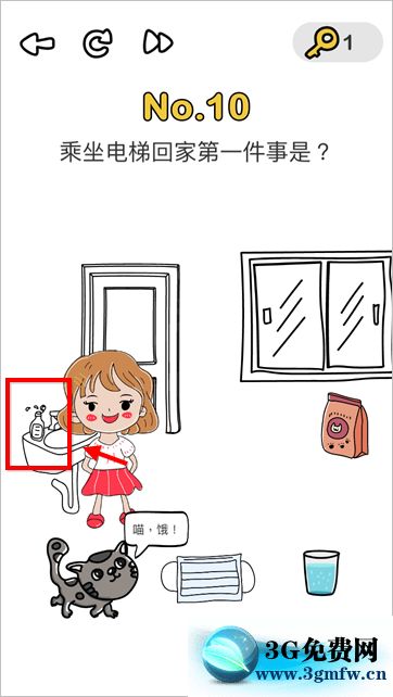 答案:当然是洗手啦!把人物拖到洗手池旁边点击洗手液。本关卡需要结合实际考虑,坐电梯肯定要按按钮,这种情况肯定要先洗手。拖动小女孩到洗手池,然后点击洗手池上的洗手液即可过关,现实生活中的你也要照做哦。