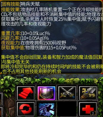 l 角色定位:敏捷型,远程输出射手;l 推荐加点:主Q副W,优先级TER;属性主点幸运;l 技能分析:1. 天赋-哨兵天赋,普攻回蓝+刷新CD,强化型技能;英雄本身不具备回蓝,且蓝量上限不受装备与属性加成;普攻几率随机刷新技能CD,且回复一定蓝量,杀死敌人时回复四分之一蓝量;被动提高闪避,提供夜视能力,刷新几率受幸运影响,蓝量回复受潜力影响;