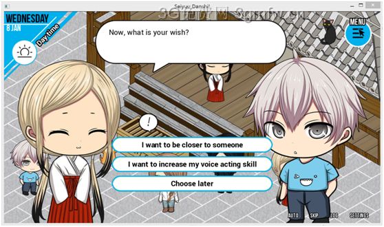 .回到巫女那里,她可以帮你增加一个人的好感(只要不太花心好感一般都不会不够,不推荐),或者增加一些声优技能数值(一周目可以选择,前期可以省下一些补课时间),也可以选择稍后选择。