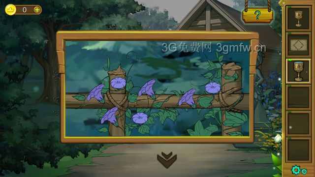 3.花坛里有花,需要把花全部调整成紫色,也是一个小游戏,如下图,花坛游戏结束后得到白色和蓝色两朵花,蓝色的花给火盆得到药粉,药粉给封印,解除第二道封印。