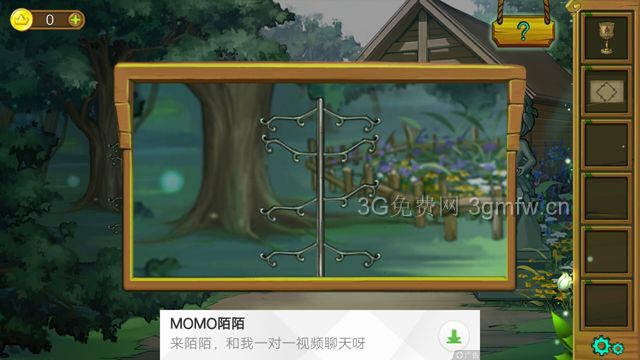 5.点击左侧灯架,根据提示卡,调整灯架位置,(提示卡中把弯曲的线调整成直线即为灯架正确位置,去除第三道封印。