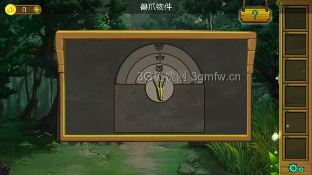 3.箱子的图案密码(来自于指示牌),从上到下分别为猫头鹰,蝴蝶,狼,放入兽爪,得到斧头。