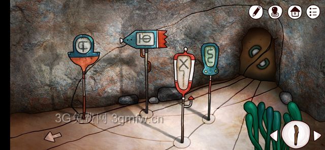 8.拿起石头扔进洞口里,应该是从左往右数,第四行的洞,拿到种子再回到刚才的屋顶,把种子种在水里方块里的控制器拿一下,右边图里的水草点一下是条虫子