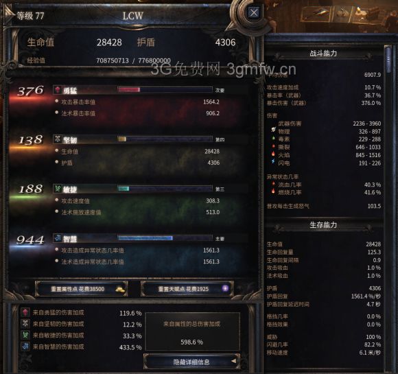 面板,智力需要补,因为要帮助异常血刃叠DOT几率,其余补勇猛给暴击。