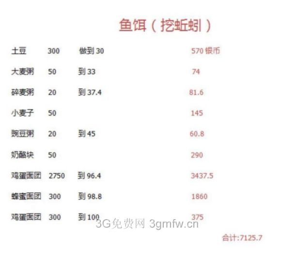 配置饵料5点、捕获加挖蚯蚓3点。 这些是基本的!必须加到人物里面的去,才可以让你稳定成长搬砖。前期玩家建议在钓鱼的过程中挖蚯蚓,挖到60%后用制作冲技能,约3000银币可以把捕获冲满!纯银子冲大概7500银子。配置饵料同样需要用制作去冲技能。至于制作鱼饵,建议到了大后期,你装备都成型了,有很多银币再冲吧,这项技能冲满我花了1.7万银币。烹饪开始烤土豆,烧茶水,这些建议20级以后吧,毕竟也是烧钱的事情!