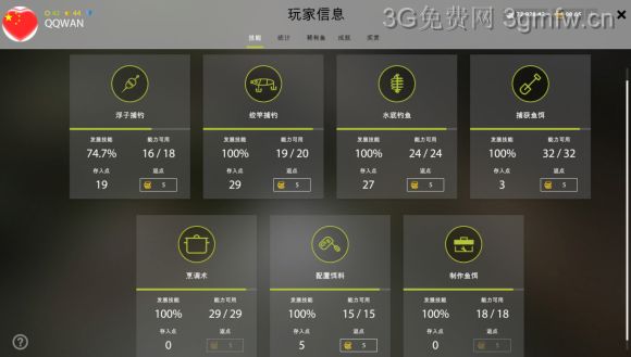 2、人物技能加点:相信所有人都非常困惑,我点怎么加,浮子(手竿)、绞杆(路亚)、水底(海竿)、捕获鱼饵、烹饪、配置饵料、制作鱼饵等7项。先告诉你哪些是必须加的点,