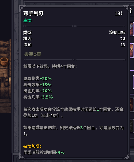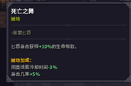 目前属性点对属性加成很低,每点属性点相对应的百分比属性收益在0.2-0.5之间。所以游戏主要的属性收益来自你的被动技能,双持剑匕是可以享受9个被动技能加成的。且击剑配上辣手利刃你会发现一群怪围着你然后叮叮叮你还没行动怪就死了。