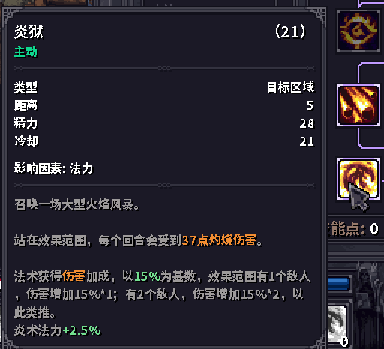 实测我出去找了个埋伏土匪试了试 范围内两个土匪 我目前220%法力 一回合烫47 两回合土匪都没了 这个技能面前其他技能都是渣渣呀!