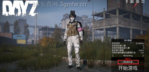1、打开游戏后,选择更改服务器,如图中红框(箭头为设置功能,更改语言从这里找):